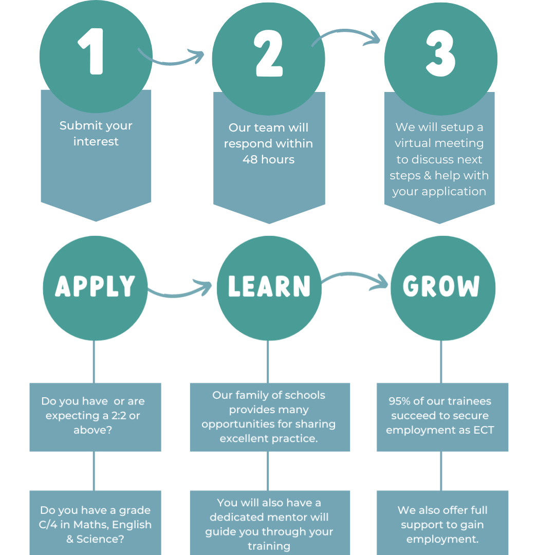 Our team is committed to providing the very best training at the start and throughout your teaching year. They will drive, guide and develop you to prepare you to enter into the teaching profession. Register your interest in our programme using the form below.